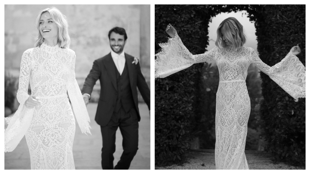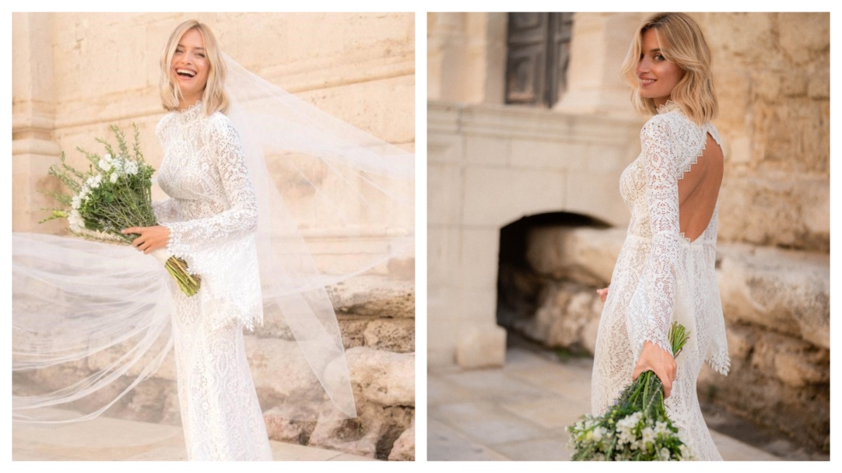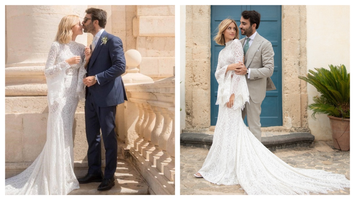 Per le sue nozze con l’avvocato siciliano Antongiuseppe Morgia celebrate sabato 21 settembre al Duomo di Ortigia, Giulia Arena ha indossato un abito da sposa mozzafiato. L’ex Miss Italia oggi attrice si è affidata ad Atelier Emé e per andare all’altare ha scelto una personalizzazione dell’abito Elinor: una sinuosa e femminile sirena destrutturata realizzata con moderno pizzo avorio dal disegno geometrico-floreale che esaltava la silhouette con una delicata semitrasparenza.
