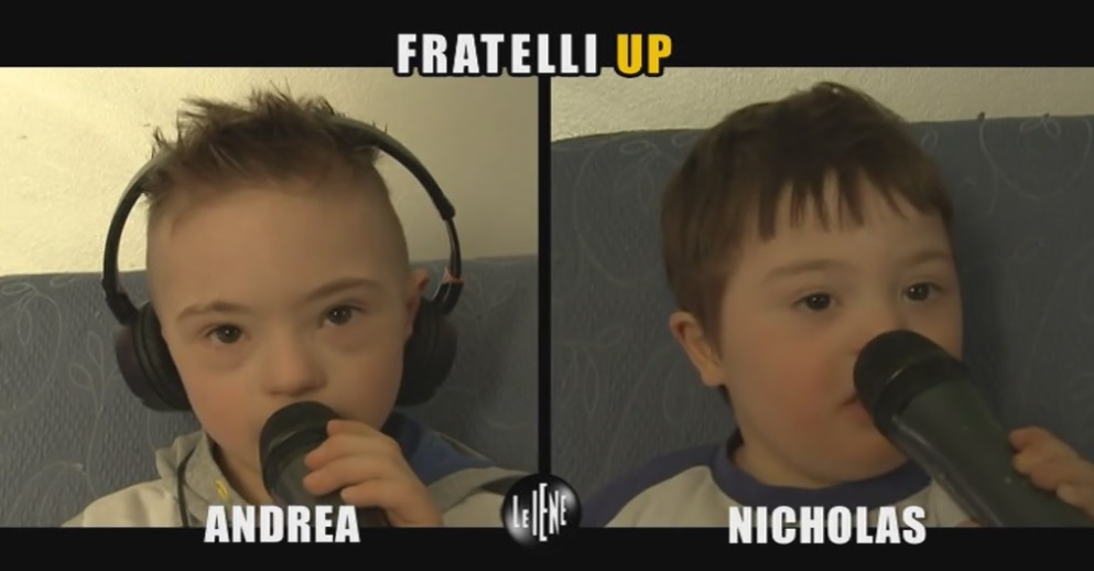 “Quando non ci sarete più chi si occuperà di loro?, domanda Nina Palmieri. E qui vengono chiamate in causa le sorelle, Nicole e Graziella, speciali e sensibili quanto i genitori. Ai microfoni del programma di Italia 1, le due raccontano questa allegra famiglia allargata. “Hanno un cromosoma in più che li rende speciali e diversi”, dicono dei fratelli. Alla domanda “Se entrassi nella loro testa come vedresti il mondo?” una delle sue sorelline risponde: “Con gli occhi a mandorla”. Segue l’intervista doppia di Andrea e Nicholas.