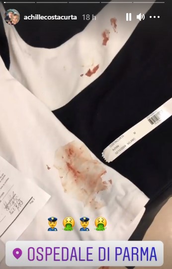 - Achille Costacurta mostra alcuni lividi e una t-shirt insanguinata