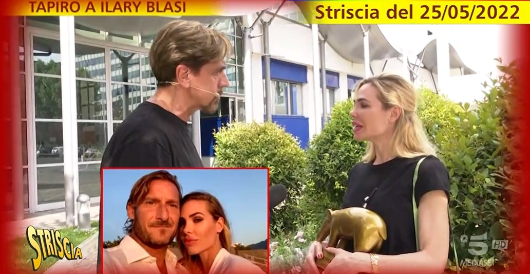 “Ci siamo visti quasi un anno fa quando la premiai e le chiesi ‘come va con Francesco?’. Le cose sono cambiate?”, chiede l’inviato di “Striscia”. “Eh…son cambiate! Avete seguito, penso”, ironizza l’ex signora Totti. “Come siete messi a borse e Rolex? Come si è conclusa la faccenda?”, incalza il tapiroforo. Anche in questo caso, Ilary Blasi ha la battuta pronta: “Eh…vediamo! Devi ritornare. Ti do un aggiornamento”.