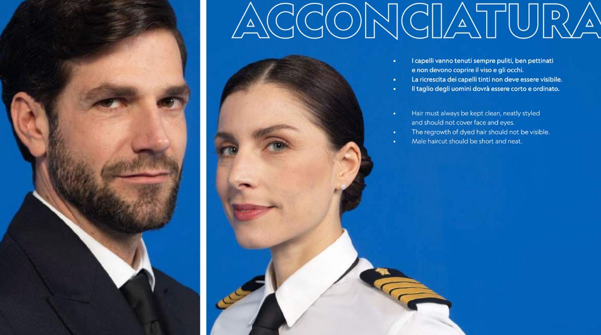 I capelli devono essere “sempre puliti”, “ben pettinati”, non devono coprire il volto e in caso di chiome tinte le ricrescita non deve essere visibile. Altro dettaglio è l’uso del berretto che per i piloti “va sempre indossato o portato sottobraccio”. Per gli uomini sono vietati orecchini in Ita come in buona parte delle aviolinee, mentre altre sono più permissive. L’ombrello “è consentito solo di colore nero o blu”. Per quanto riguarda l’abbigliamento, uomini e donne sono dotati di un’uniforme che va indossata sempre in modo impeccabile. Giacca abbottonata, pantaloni sempre con la cintura, scarpe classiche, no a quelle sportive, mentre l’impermeabile non deve mai avere il bavero alzato sul collo. La spilletta va indossata a sinistra, l’orologio deve essere di “dimensioni moderate”, così come professionali devono essere gli occhiali da vista o da sole.