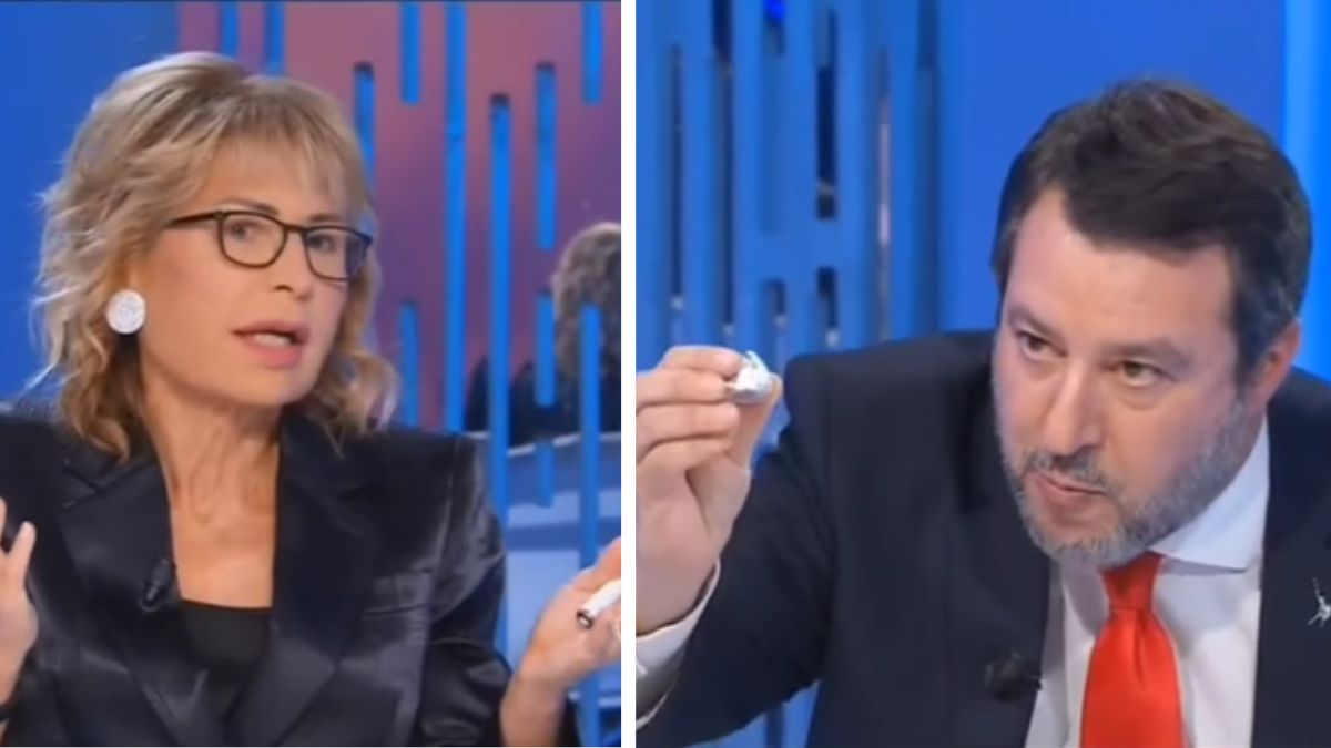 A quel punto Matteo Salvini, per smorzare i toni, tira fuori dalla tasca due cioccolatini e dice: “È la ‘Giornata mondiale della gentilezza’ e ho preso un Bacio Perugina per le signore”. “La ringrazio, lei è molto gentile”, sottolinea frettolosamente la conduttrice. Michele Santoro protesta sorridendo: “A me niente bacio?”. “No, solo per le signore”, chiosa il vicepremier.
