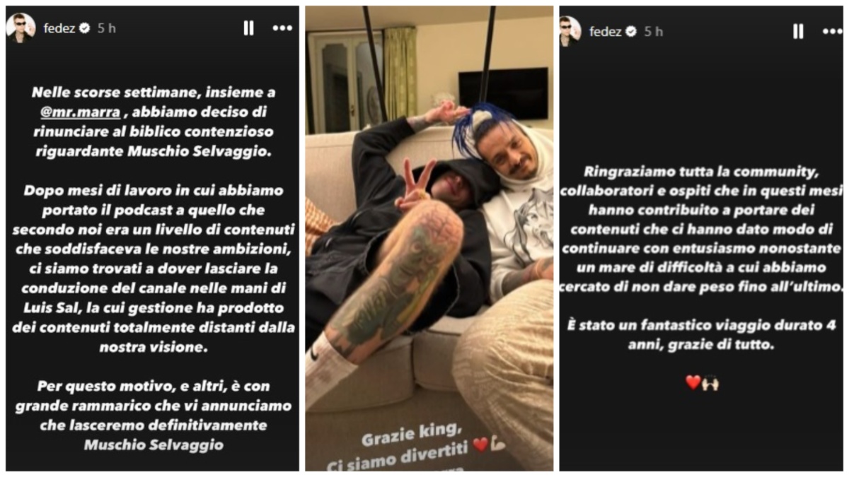 Fedez continua a parlare di rinuncia più che di sconfitta. “Nelle scorse settimane – ha scritto in una Instagram Story – insieme a Mr. Marra abbiamo deciso di rinunciare al biblico contenzioso riguardante Muschio selvaggio. Dopo mesi di lavoro in cui abbiamo portato il podcast a quello che secondo noi era un livello di contenuti che soddisfaceva le nostre ambizioni, ci siamo trovati a dover lasciare la conduzione del canale nelle mani di Luis Sal, la cui gestione ha prodotto dei contenuti totalmente distanti dalla nostra visione”.