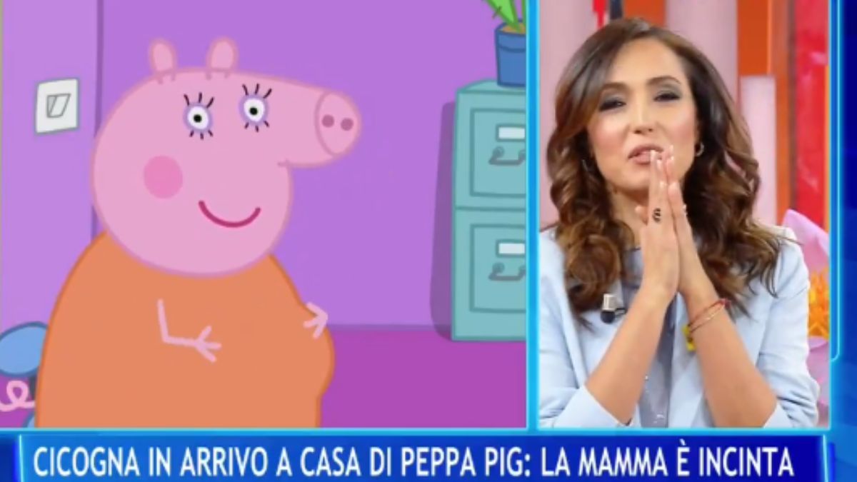 Caterina Balivo intervista in collegamento la mamma di Peppa Pig che annuncia la sua gravidanza. Nella puntata de “La volta buona” di giovedì 6 marzo la conduttrice annuncia di avere un ospite d’eccezione, la creatrice del personaggio del noto cartone animato tanto amato dai bambini di tutto il mondo. Tra le risate del pubblico, la padrona di casa mette su un sketch molto divertente. “Possiamo sentirla e vederla, è la sua prima intervista, siamo molto felici di conoscerla, lei è la mamma di Peppa e George”, esordisce Caterina Balivo. M lo scoop arriva poco dopo quando l’ospite annuncia di essere in attesa del suo terzo figlio. Che Mamma Pig fosse in dolce attesa per la terza volta si sapeva già, da quando la notizia è stata data nell’episodio speciale di Peppa Pig in onda giovedì 6 marzo su Rai YoYo, dal titolo “Il Grande annuncio”. Ma la madre del maialino più amato dai bimbi ha voluto intervenire personalmente a “La Volta Buona” per ribadire la lieta novella.