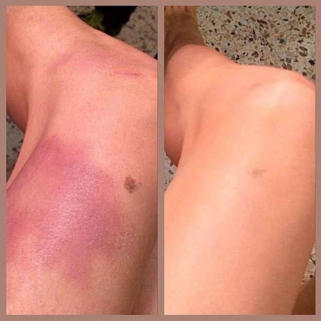 Piccolo incidente sul lavoro per Martina Colombari. L’ex Miss Italia, impegnata nelle repliche dello spettacolo “The Best of Musical”, ha avuto un “incontro ravvicinato” con un elemento dello scenografia che le ha provocato due vistosi ematomi, uno sulla coscia e uno sul ginocchio. “”Durante lo show, contro un cubo di scenografia…!!! Doloreeeee! Show must go on!!!”, scrive la Colombari commentando le foto postate su Instagram.