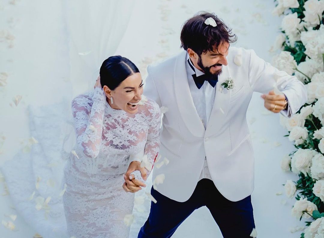 Lo sposo è direttore commerciale di New Guard Group, che comprende un gruppo di aziende di abbigliamento come Marcelo Burlon, Off White, Palm Angels, Unravel Project e Heron Preston. Prima dello scambio degli anelli, Andrea Bocelli ha cantato in onore della coppia. La festa è proseguita tra danza sfrenate sino all’alba e si è conclusa con gli immancabili fuochi d’artificio.