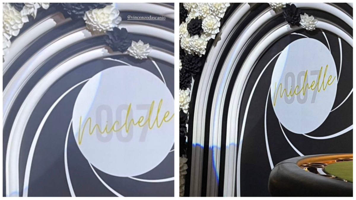 La festa, ribattezzata “Michelle 007” è stata a tema James Bond. Il locale ubicato in corso Sempione è stato addobbato con fiori bianchi e neri e illuminato da svariati neon. L’accompagnamento musicale è stato affidato alla Raoul Swing Orchestra. A realizzare il dolce, il re del cioccolato Ernst Knam.