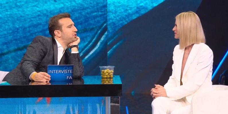 Amedeo Grieco inizia col botto: “Ma che ca**o ti ridi dalla mattina alla sera? La gente lo vuole sapere”. “Perché la vita è bella”, sentenzia la Hunziker. Immancabile la domanda sul suo primo marito: “Eros Ramazzotti, una storia d’amore lunghissima, una grande amicizia, qual è il segreto?”. “Beh, ci vogliamo bene, abbiamo una figlia, stiamo diventando nonni e poi a me piace l’armonia”, replica Michelle.
