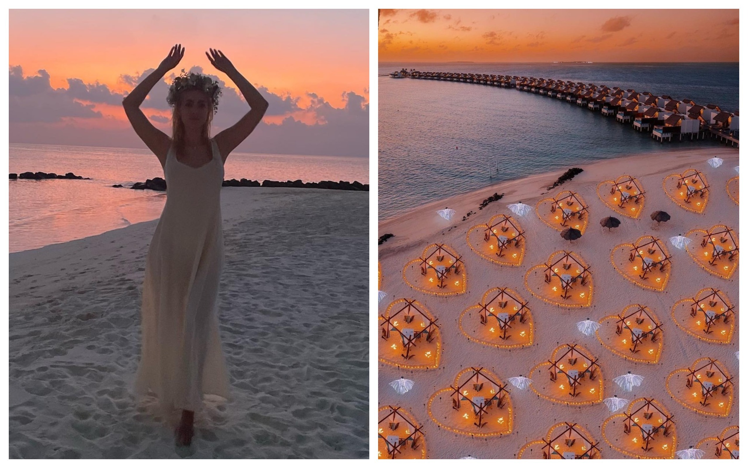 Dal profilo Instagram dell’attrice (GUARDA QUI) arrivano scatti mozzafiato e dolci dediche. “E dirti che fortuna averti incontrato”, scrive la signora Carullo in estasi dinanzi a un tramonto maldiviano. “Paradise! Chiedimi se sono felice”, aggiunge mentre emerge dalle acque bella come una dea. Le giornate scorrono lente tra brunch in acqua, cene romantiche a due in spiaggia e selfie in topless.