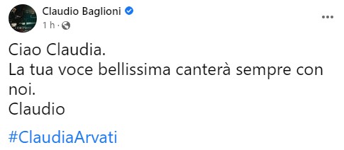 Ed ancora: “Ciao grandissima ARTISTA, dicevi che cantando ti passavano tutti i dolori e scacciavi via tutti i pensieri…canta per i nostri angeli adesso”, “La tua sofferenza al raduno mi ha commosso. Che la tua voce possa illuminare ancora di più le stelle”, “Ha vinto lui, il maledetto ha deciso di portarcela via. Di privarci della sa voce, della sua bella allegria e della persona bella e gentile…ma non ce la strapperà dal cuore. Ciao dolce Claudia!”, “Ma come… Non ce la faccio a pensare che non la rivedrò più insieme a te e alle altre ragazze… Così presto, che destino crudele! Ora però il coro degli angeli avrà una grande maestra. Ciao tesoro”. Tra i primi a ricordarla anche Gigi D’Alessio: “Da oggi sei la voce più bella del coro degli angeli. Ciao Claudia”. “Eravamo giovani, compagne di musica e di giochi – gli fa eco Fiorella Mannoia – La voglio ricordare così con quel sorriso e quell’allegria contagiosa. Buon viaggio Claudia”. La Arvati è stata finalista della seconda edizione di “The Voice Senior”.