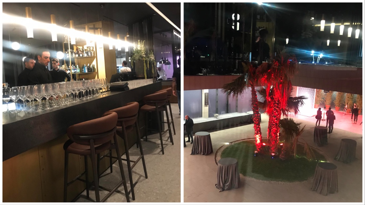 Il primo piano si estende su una superfice di 500 mq ed è suddiviso in diverse aree, con cucine tutte a vista, un ristorante gourmet che proporrà piatti più ricercati della tradizione e internazionali, una steak house con le migliori carni nazionali ed estere, cotte sul carbone, un sushi bar e un cocktail bar internazionale, tra zone tavoli, lounge e divani e una cantina di etichette italiane e top di gamma estere. Il rooftop panoramico con una terrazza di 600 metri quadri sarà aperto tutto l’anno, in assenza di pioggia, anche in inverno con ombrelloni, funghi e copertine, ed è ricco di piante esotiche e ornamentali. Qui vengono replicati tutti i servizi offerti all’interno del primo piano.