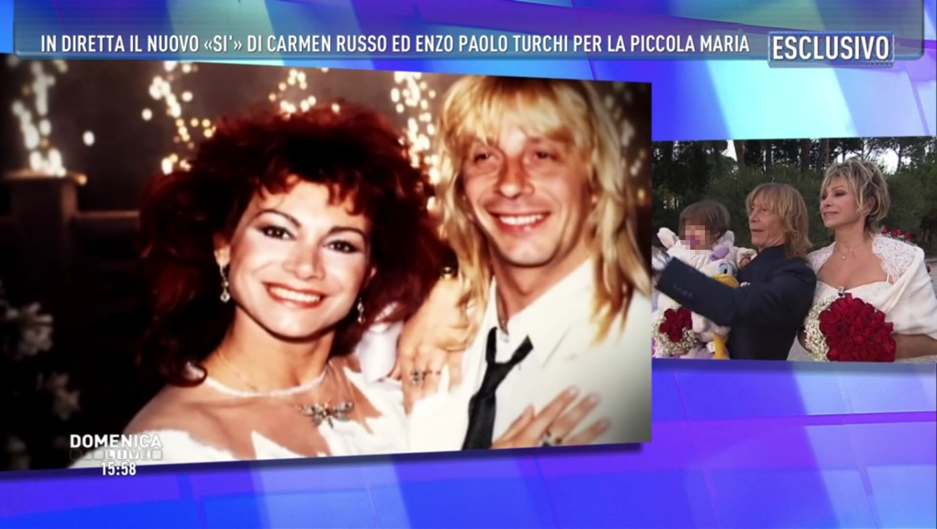 Carmen Russo e Enzo Paolo Turchi si sono sposati due volte: la prima nel 1987, la seconda nel 2015 davanti alle telecamere di “Domenica Live”. In occasione del secondo sì, a fare da damigella d’onore è stata Maria, la bimba avuta nel 2013 grazie alla fecondazione assistita.