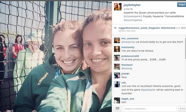 Due atlete della squadra di hockey australiana si trovano nel Regno Unito per i Giochi del Commonwealth. Per celebrare la vittoria, le due compagne di squadra pensano di scattare una foto ricordo. Non potevano di certo immaginare che il selfie sarebbe diventato virale in pochi minuti. Ad intrufolarsi “senza permesso” nello scatto è niente poco di meno che la regina d’Inghilterra. Inaspettatamente Elisabetta II fa capolino, sorridente, alle loro spalle. “Che giornata: 4-0 con la Malesia e abbiamo anche incontrato la regina“, commentano su Instagram.