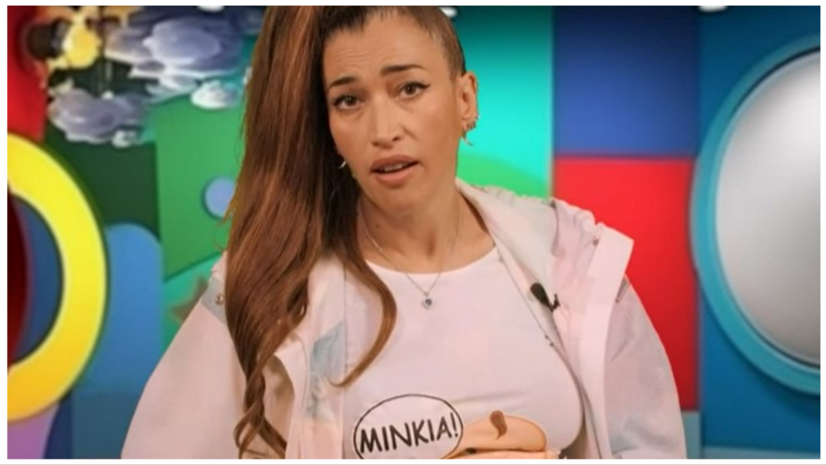 Nina Zilli manifesta ad Assunta la sua solidarietà ma allo stesso tempo le indica la soluzione per risolvere il suo problema: “Assunta, capiamo la tua disperazione. Noi mammeminKia ti siamo vicine. Prima che la sua prima parola sia ‘mamma’ o ancora peggio ‘papà’, fate giocare il vostro bambino col pupazzetto di TeleminKia. Per attivarlo basta dare il comando vocale ‘minkia’ e sarete sicure che la prima parola del vostro piccolino sarà quella giusta”. Tutto è bene quel che finisce bene.