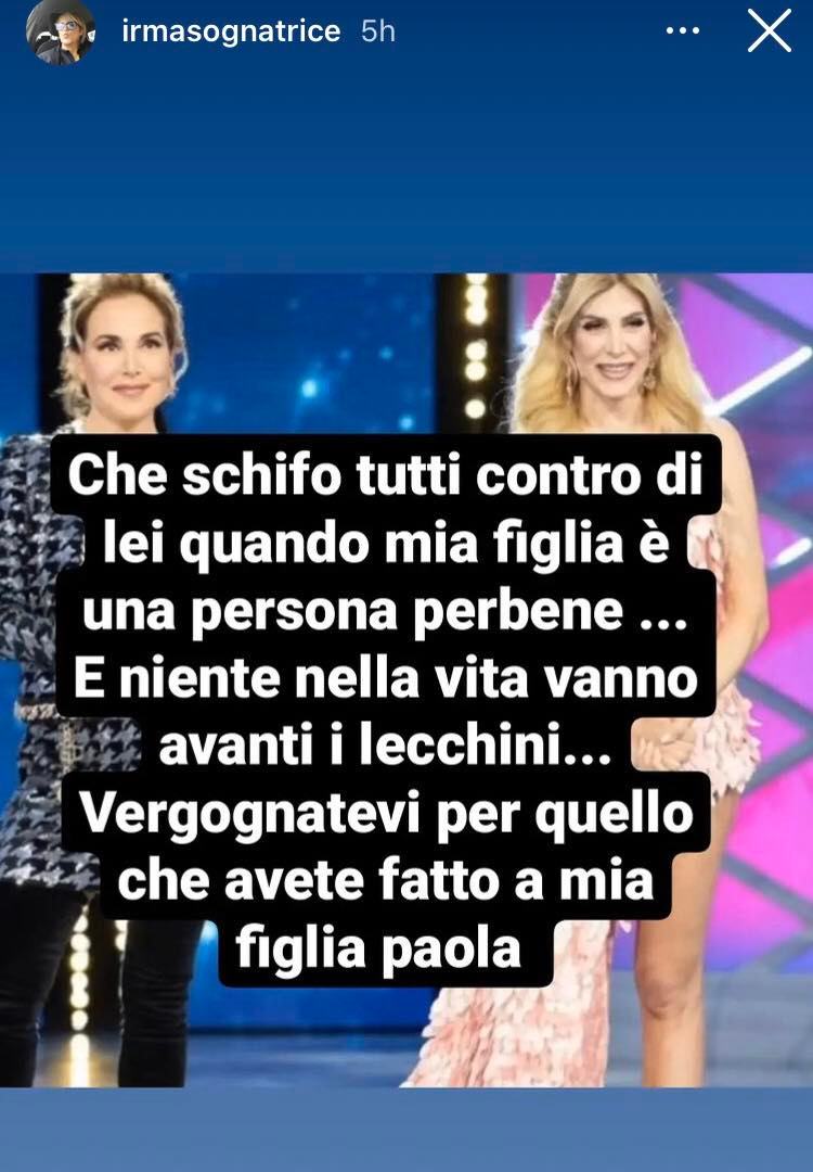 Ad usare parole ancora più dure è stata Irma, madre di Paola. “Che schifo tutti contro di lei quando mia figlia è una persona perbene…E niente nella vita vanno avanti i lecchini… Vergognatevi per quello che avete fatto a mia figlia Paola”.