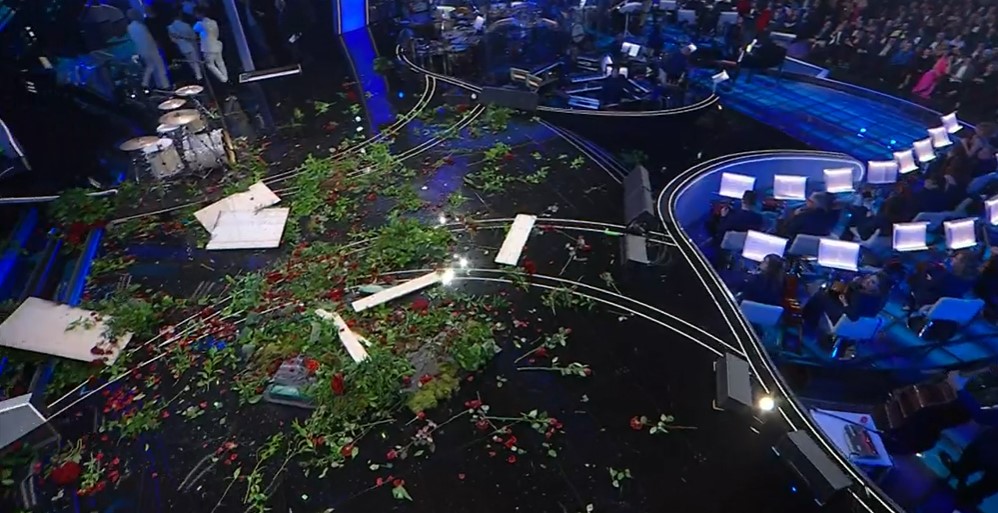 “Io mi aspetto delle tue scuse – ha aggiunto Diaco – Però io mi auguro che le tue scuse arrivino questa sera sul palco del Teatro Ariston. Faresti un gran gesto a chiedere ad Amadeus di accedere su quel palco senza cantare, rivolgendoti al pubblico e chiedere scusa. Perché dietro una scena c’è del lavoro. C’è chi lavora, gli attrezzisti, i macchinisti. Tutta la produzione che lavora dietro una macchina come Sanremo. Poi gli artisti che vengono dopo che si sono ritrovati la tua distruzione sul palco”.