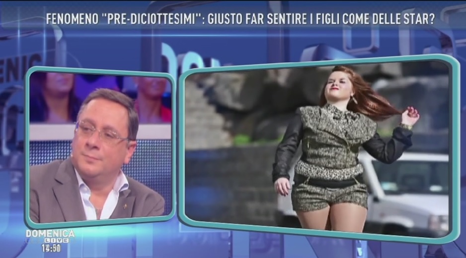 Il fenomeno “pre-diciottesimo” ha tenuto banco ieri a “Domenica Live“. La mattatrice Barbara D’Urso ha lanciato un talk show surreale al quale hanno partecipato anche lo psichiatra e psicoterapeuta Raffaele Morelli e Gianni Muscolino, il fotografo siciliano ideatore dei tanto vituperati filmati al limite del trash che celebrano la maggiore età di tanti adolescenti. In studio c’è anche Arianna, che è sicuramente il simbolo di questa nuova tendenza. Il suo video, tra pose sexy sulle rotaie, pali per la lap dance e completini leopardati e da cowgirl, ha registrato parecchie critiche.