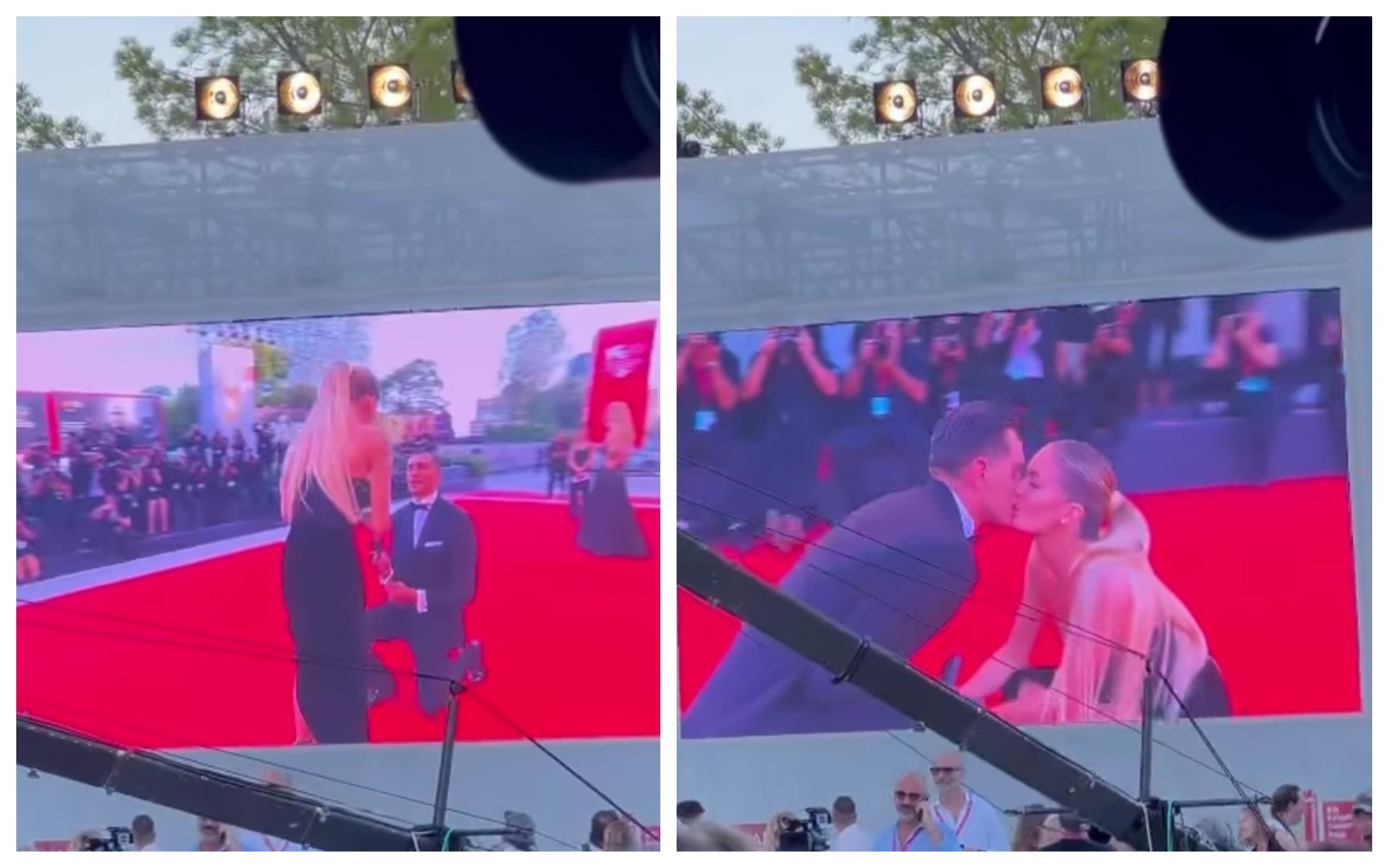 Fuoriprogramma decisamente inaspettato oggi sul red carpet della Mostra del Cinema di Venezia. Mentre Alessandro Basciano e Sophie Codegoni posavano per le foto di rito, lui si è inginocchiato, ha tirato fuori una scatolina contenente un anello di fidanzamento gelosamente custodito sino a quell’istante e ha chiesto la mano della fidanzata conosciuta qualche mese fa nella casa del “Grande Fratello Vip”.