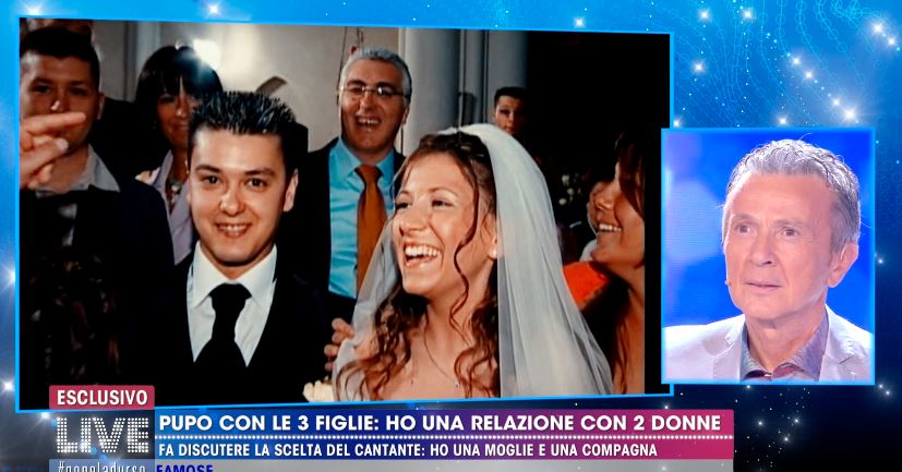 Pupo, nome d’arte di Enzo Ghinazzi, ha da oltre 30 anni una vita sentimentale molto affollata. Il cantante 67enne ha una moglie, Anna, sposata nel 1974, e una compagna Patricia, sua ex manager, con cui ha contemporaneamente una relazione dal 1989. In mezzo ci sono tre figlie che gli hanno regalato la gioia di essere nonno. Due, Ilaria e Clara, sono nate dal matrimonio con Anna. La sua secondogenita Valentina è invece frutto di una relazione extraconiugale con una fan. Pupo sostiene di aver avuto nella sua vita complessivamente 600 donne.