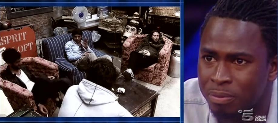 L’eliminazione di Andrea Cerioli, sancita dal televoto, era nell’aria. Da qualche giorno l’agente pubblicitario bolognese era bersaglio di insulti e critiche per via di alcune frasi offensive pronunciate ai danni di Samba. “Prendiamogli un biglietto per Lampedusa e rispediamolo in Senegal”, aveva detto infastidito dalle canzoncine africane intonate dal senegalese. Del presunto caso di razzismo si discute durante la diretta. Il “Grande Fratello” mostra ai concorrenti le immagini che documentano l’episodio. E mentre il bolognese parla di uno “gioco”, Samba si affretta a perdonarlo. “Bisogna sempre prestare un pochino attenzione a quello che si dice – fa notare Alessia Marcuzzi – anche quando viene fatto in maniera goliardica”. “In questo caso faccio delle gigantesche scuse…sentite…ho due amici di colore da quando son bambino….sono la persona meno razzista che io conosca”, replica Andrea che però sbotta appena chiuso il collegamento: “Il prossimo lunedì mi rimprovereranno di aver offeso uno gnomo”.