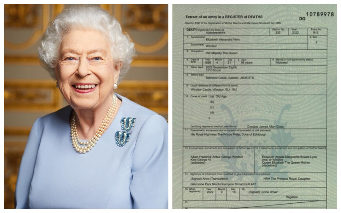 Dal certificato di morte pubblicato dal National Records of Scotland (l’anagrafe scozzese, ndr.) si evince che Sua Maestà è “morta di vecchiaia” l’8 settembre alle 15.10 ora locale (16.10 ora italiana).