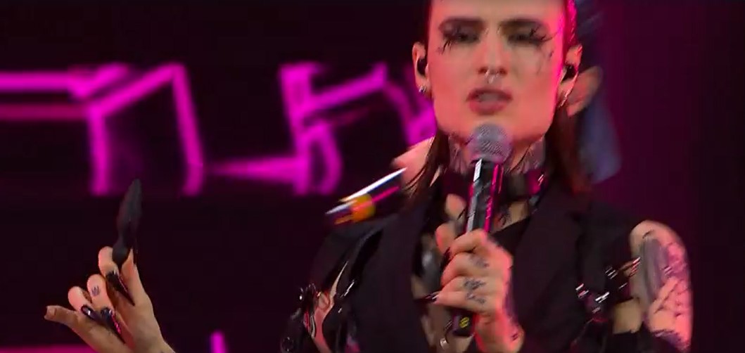 Show fetish sul palco del Teatro Ariston in occasione della serata dei duetti del “Festival di Sanremo” che tradizionalmente precede il gran finale. A portarlo in scena l’artista più trasgressivo di questa 73esima edizione: il cantore del poliamore e della libertà sessuale Rosa Chemical. Il cantautore piemontese con tanto di look dark si è presentato sul palco con la collega Rose Villain e insieme hanno proposto una cover di “America” di Gianna Nannini, celeberrimo inno all’autoerotismo datato 1979.