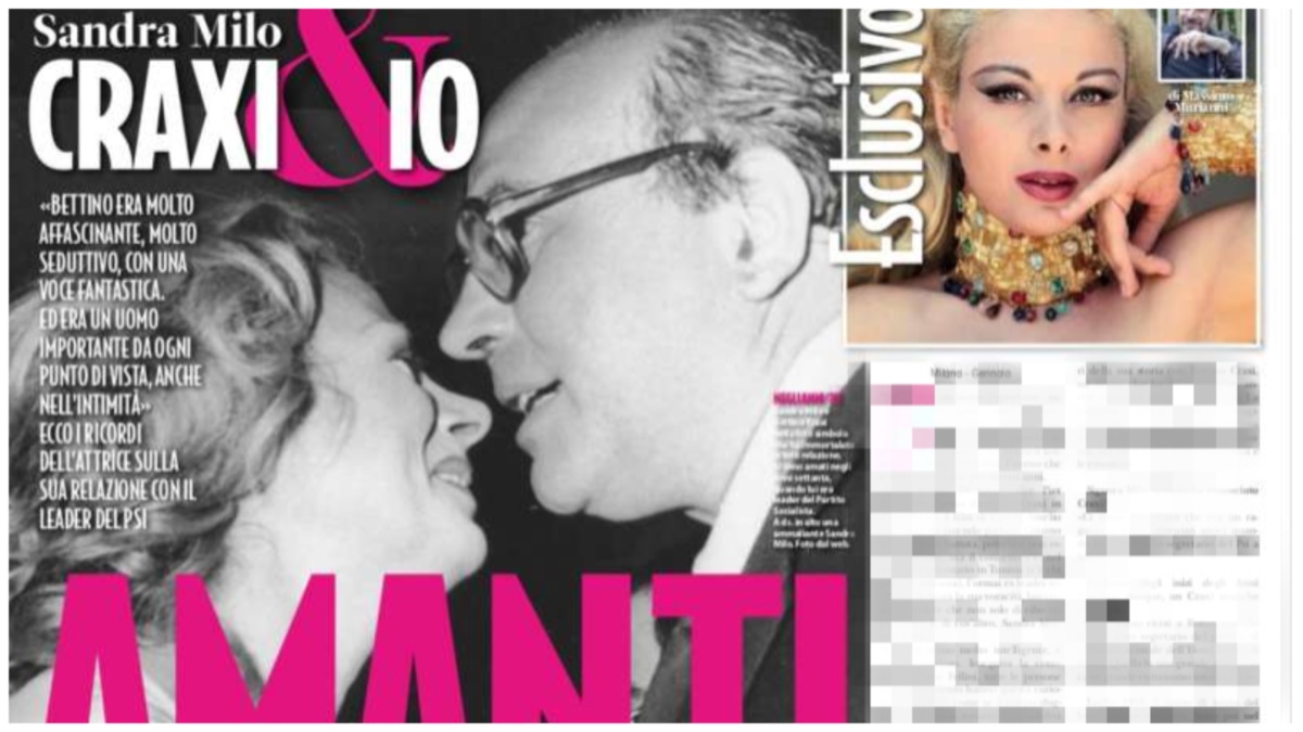 Sandra Milo confessò che la loro relazione durò “per molto tempo”: “Mi ricordo che aveva una stanzetta piccola piena piena di libri, di giornali, di cose… perché passava il tempo a leggere e studiare. In questa piccola stanza lui era un uomo meraviglioso. E poi abbiamo continuato a incontrarci anche quando l’hotel Raphael gli diede una camera più grande, molto bella, con la terrazza”. L’attrice confidò anche di aver incontrato la moglie di Bettino Craxi: “Anna è una donna fantastica. Io avevo scritto un libro, si intitolava Venere e il Psi, Bruno Tassan Din aveva acquistato i diritti per 60 milioni di lire, mi pare, ma non lo aveva pubblicato, lo teneva lì. Una sera eravamo alla Scala di Milano per una Prima, in teatro c’era anche Anna Craxi. Durante l’intervallo, qualcuno, le disse: ‘Sai che Sandra ha scritto un libro sul Psi e Bettino?’. E lei che non sapeva niente: ‘Lo so benissimo, perché Sandra l’ha fatto leggere per prima a me’. Un’intelligenza e una presenza di spirito straordinaria”.