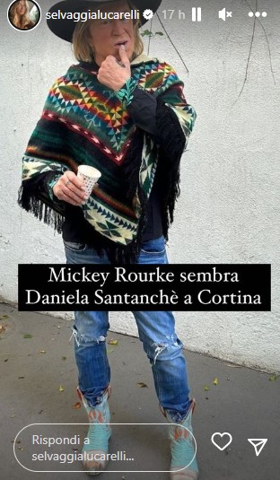 Selvaggia Lucarelli stronca uno degli ultimi outfit sfoggiati da Mickey Rourke sui social. “Sembra Daniela Santanchè a Cortina”, ironizza tra le Instagram Stories. Che fine ha fatto Mickey Rourke? L’ex sex symbol di Hollywood ha compiuto 70 anni lo scorso settembre. Negli ultimi anni, è stato bersagliato dalle critiche per via di un presunto abuso di interventi di chirurgia estetica coinciso con il tracollo professionale.
