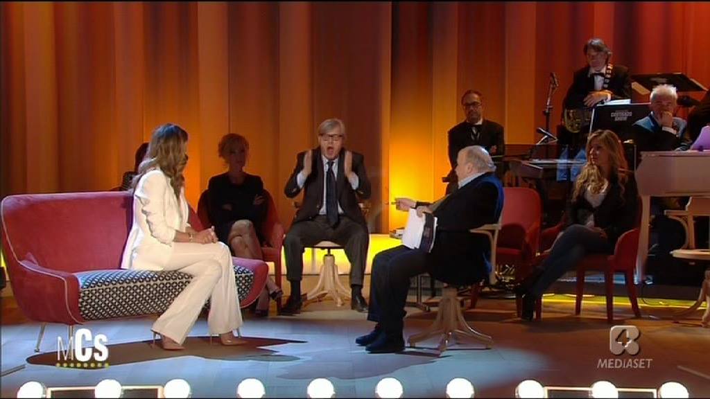 Dopo le polemiche della scorsa settimana, Vittorio Sgarbi torna al “Maurizio Costanzo Show” in compagnia del figlio Carlo Brenner. Ancora una volta il critico d’arte riesce a calamitare l’attenzione su di sé. Arrivato sul palco con mezz’ora di ritardo, Sgarbi esordisce lanciando una frecciatina a Fiorello in riferimento alla querelle esplosa sette giorni fa: ” Il paradosso della falsa polemica è che lui cantava la canzone “Se Telefonando”. Potrò telefonare c****, mentre canti questa canzone?”.