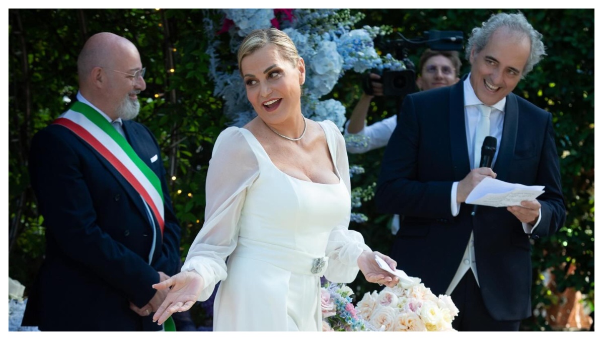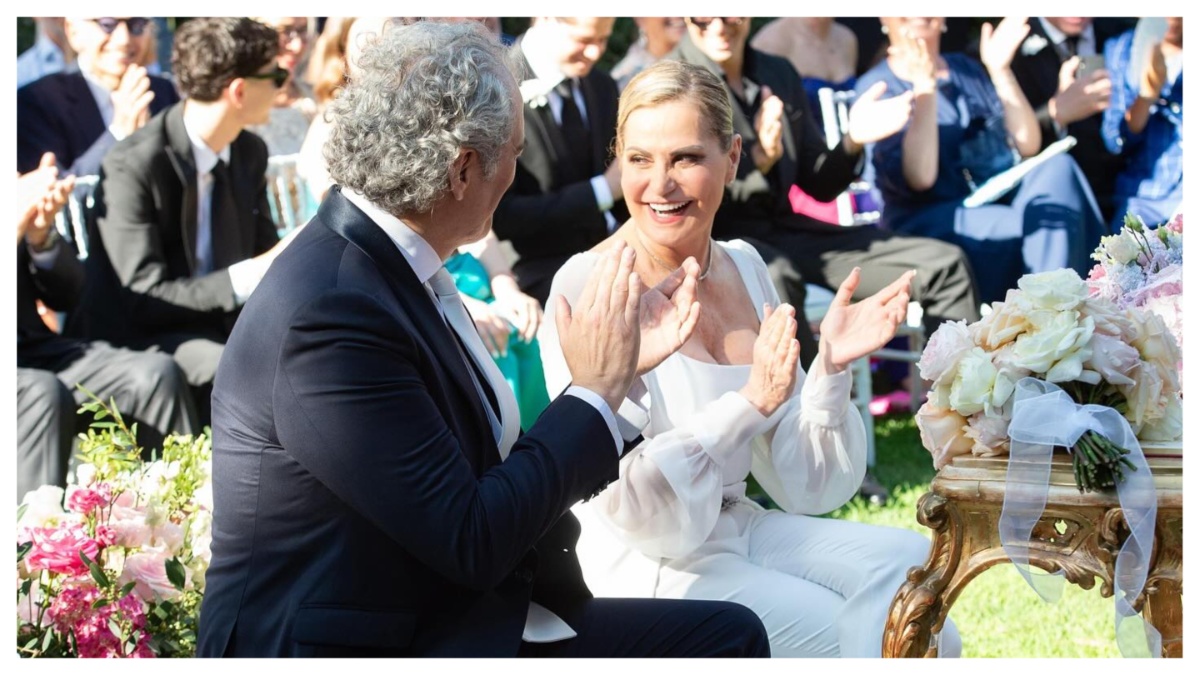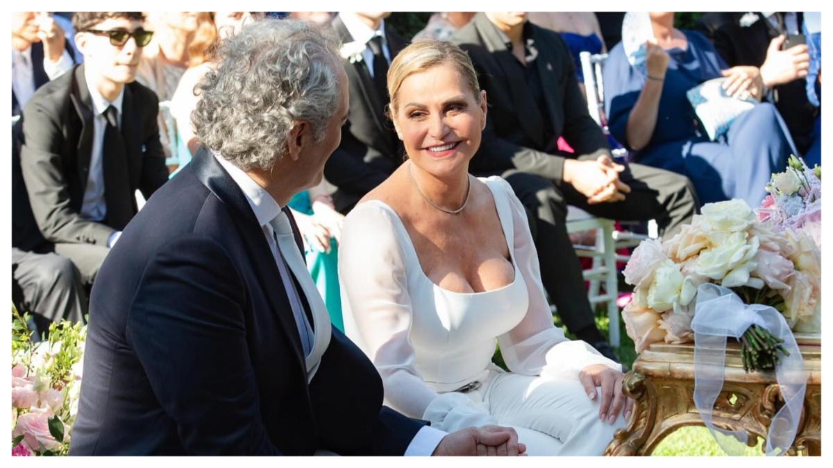 Simona Ventura, 59 anni, e Giovanni Terzi, 60, sono convolati a nozze sabato 6 luglio a Rimini dopo sei anni d’amore. La conduttrice televisiva e il giornalista e scrittore hanno pronunciato il fatidico sì alla presenza di circa 200 invitati al Grand Hotel di Rimini che è il loro posto del cuore. La cerimonia si è svolta all’aperto con rito civile ed è stata officiata dall’ex presidente della Regione Emilia-Romagna Stefano Bonaccini, amico della coppia. La sposa ha scelto come testimone Milly Carlucci. “Mi è stata vicina e mi ha dato grandi opportunità – ha confessato SuperSimo in un’intervista a “Chi” – Siamo diventate amiche, confidenti, ha capito i miei momenti difficili e, visto che la proposta di matrimonio è avvenuta a Ballando con le stelle e Milly ne è stata la prima testimone, mi piaceva che lo fosse anche a Rimini”. Per l’occasione Milly Carlucci ha sfoggiato uno smoking rosa shocking dai dettagli in satin.