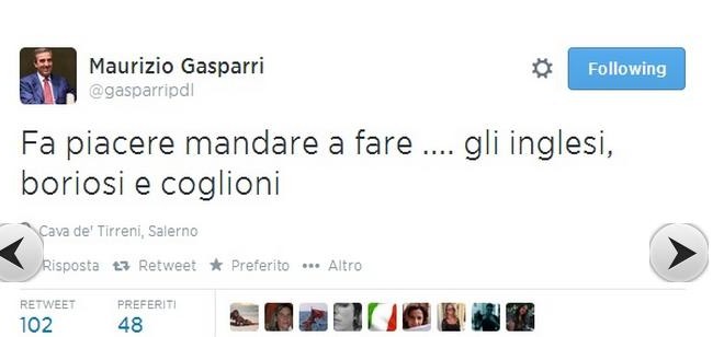 Vivace scambio di battute tra Maurizio Gasparri e John Peter Sloan durante la trasmissione radiofonica “La Zanzara“. Si parla dell’uscita infelice di Gasparri che, all’indomani della sconfitta dell’Inghilterra contro gli Azzurri di Prandelli, aveva twittato: “Fa piacere mandare a fare…gli inglesi boriosi e cog*****“. L’esternazione aveva sollevato un vespaio di polemiche. Lo scrittore inglese, ospite di Giuseppe Cruciani, replica così al senatore di Forza Italia che lo scambia per David Parenzo e poi per un imitatore: “Io faccio una cosa accademica e culturale…Gasparri non può conoscermi, è difficile che gli ignoranti sappiano chi io sia… Sono 25 anni che vivo in Italia e mai ho sentito una frase del genere. E guarda caso viene da questo qua. E’ veramente un pagliaccio, un ‘fucking idiot’…Se lui vuole fare figure di m****, le faccia per sé e non per gli altri italiani. Gli italiani non sono come lui. Frasi di questo tipo non le dicono gli italiani normali, ma due o tre fessi”.