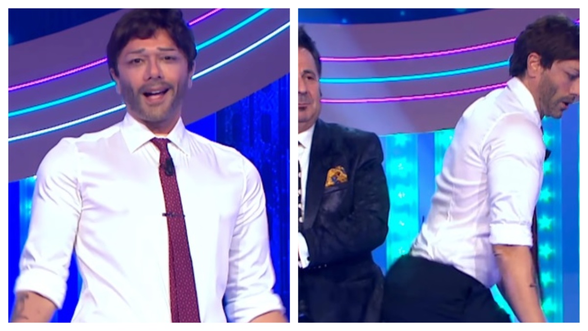 Luigi Esposito nei panni di Stefano De Martino ha poi accennato dei passi di danza iniziando ad ancheggiare. “Sembra un pretesto per far vedere il c*lo – hanno sentenziato Giorgio Gherarducci e Marco Santin – Ma poi quei pantaloni non saranno un po’ troppo stretti? Sembrano fatti apposta per mostrare la parte posteriore”. “State sbagliando, non è una questione di c*lo. Si chiama lavoro e talento”, ha puntualizzato il finto Stefano De Martino prima di ripercorrere l’infanzia difficile a Torre Annunziata. “Mai avrei immaginato di diventare il sexy scugnizzo della televisione italiana”, ha gongolato raccogliendo fiori e applausi.