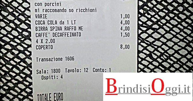Quattro clienti di una pizzeria situata nelle campagne tra Maruggio e Campomarino, nel Tarantino, non potevano credere ai propri occhi. Al momento del conto, si sono visti recapitare uno scontrino “particolare”. Tra pizze, coca cola, birre e caffè, è finita una “nota a margine” indicata dal cameriere nell’ordinazione presa e trasmessa in cucina con il palmare: “Mi raccomando so’ ricchioni”. Inorriditi, i quattro ragazzi omosessuali hanno protestato con il proprietario che si è subito scusato per l’accaduto.