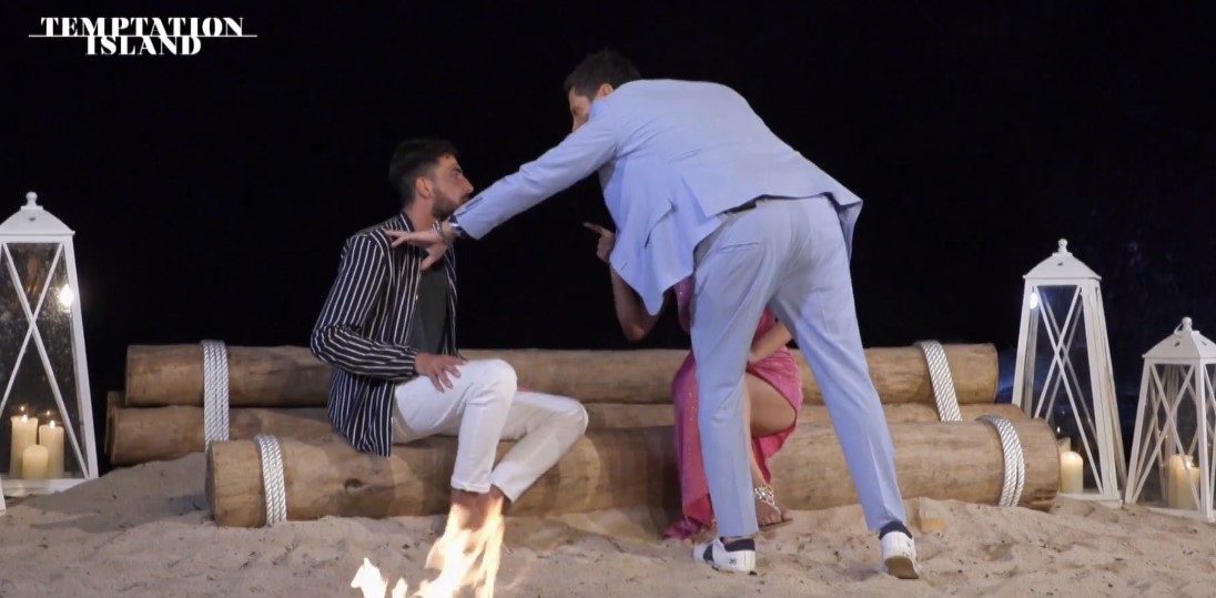 Filippo Bisciglia ha comunicato a Gabriela che il fidanzato ha chiesto il falò anticipato. I due si sono ritrovati davanti al fuoco ed è partito un botta e risposta al vetriolo. “Sette anni di prese per il cu*o – ha esordito Gabriela – Hai parlato troppo. Muto! Me lo sono portato a letto? Ma che ca**o stai dicendo?”. “Te l’avevo detto prima di partire: non sbagliare”, ha risposto Giuseppe sempre più alterato. Il conduttore si è avvicinato per placarlo: “Giuseppe, solo un po’ più calmo. Un attimo! Toni civili…ok? Ce la puoi fare. Le stesse cose le puoi dire in maniera tranquilla”.