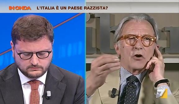 “Se siete così cafoni ditelo e io me ne vado”. Vittorio Feltri in collegamento con “In Onda” a La7 si scalda con Gennaro Migliore del Pd e il conduttore David Parenzo e dopo essere stato interrotto si stacca l’auricolare e saluta tutti. Si parla dell’omicidio di Fermo, dove il nigeriano Emmanuel Chidi Namdi è morto dopo una colluttazione con l’italiano Amedeo Mancini, e il sottosegretario Migliore accusa Feltri e “Libero” di portare avanti posizioni razziste.