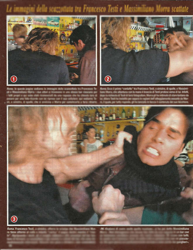 Un dietro le quinte incandescente quello di “Furore – Il vento della speranza”, la fiction che debutterà mercoledì 14 maggio su Canale 5. I due protagonisti Francesco Testi e Massimiliano Morra, apparsi in tv a “Verissimo” in profonda sintonia, stanno facendo discutere per una scazzottata immortalata da “DiPiù”. Come documenta il settimanale, i due attori si sono presi a pugni in un bar di Roma. L’alterco è stato ripreso con il cellulare da una testimone e le immagini sono prontamente finite sul tavolo della redazione di “DiPiù”. Interpellato sui motivi della rissa, Francesco Testi, ex concorrente del “Grande Fratello”, ha dichiarato al magazine: “Se mi chiedete perchè io e Massimiliano Morra abbiamo litigato e perché lui abbia avuto una reazione così furibonda nei miei confronti, posso solo dire che tutto quello che è successo nasce dalla sua ex fidanzata, Adua, che ha lavorato con noi in “Furore”…”.
