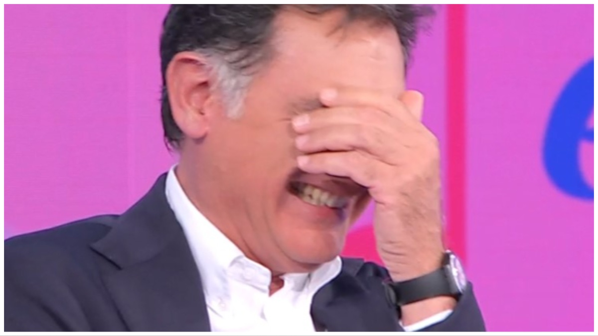 Tiberio Timperi ride a crepapelle e non riesce più a smettere