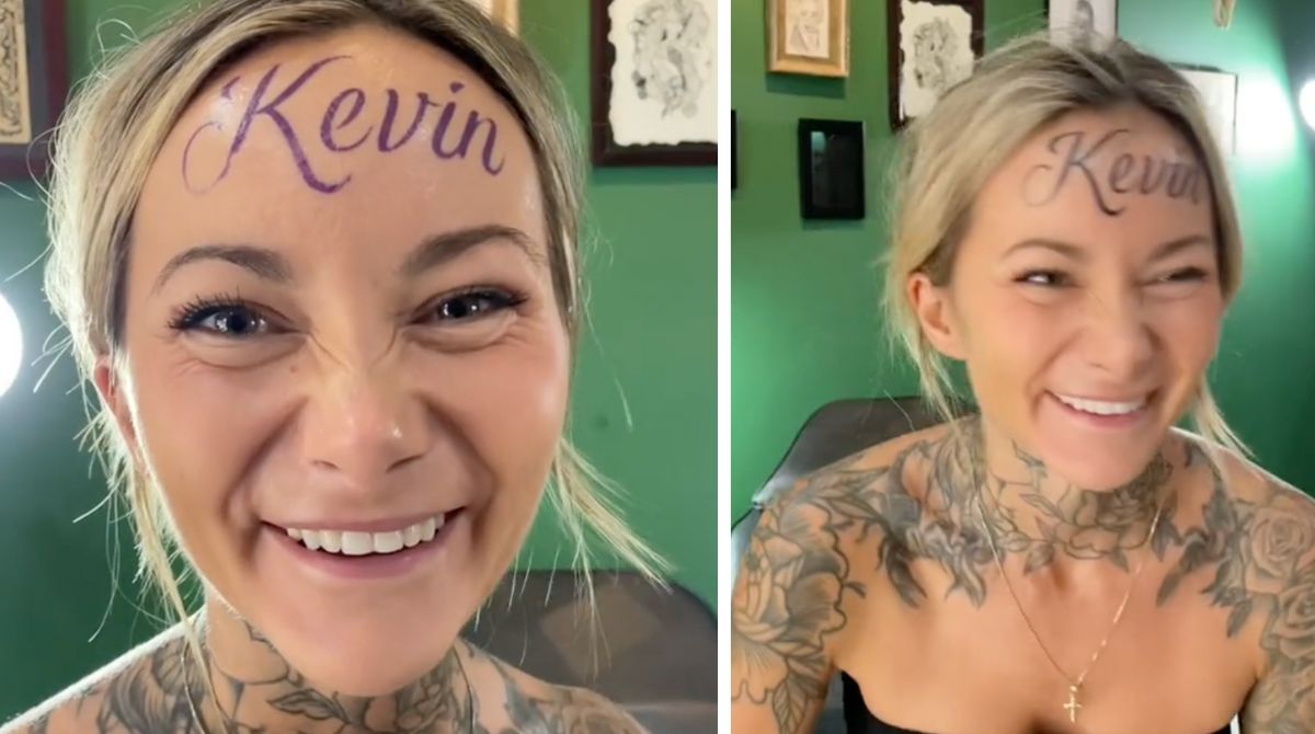 Una prova d’amore senza precedenti quella che una tiktoker di nome Ana Stanskovsky ha riservato al suo fidanzato. La giovane si è tatuata il nome in viso dell’amato, a caratteri cubitali, sulla fronte. Il fortunatissimo fidanzato si chiama Kevin e la sua dolce metà ha pensato bene di portarlo sempre con sé, stampato in fronte. Un gesto plateale che non tutti hanno definito romantico, bensì esagerato. Ana Stanskovsky è una social star e ha pubblicato sul suo profilo diversi video in cui mostra passo dopo passo la scelta del tatuaggio, il momento dolorosissimo in cui il tatuatore le incide il nome Kevin in fronte e il risultato finale che la giovane trova esaltante. La clip ha raccolto oltre 17 milioni di visualizzazioni e il suo gesto ha suscitato quasi più clamore del giovane che si è tatuato la frangetta per nascondere la calvizie.