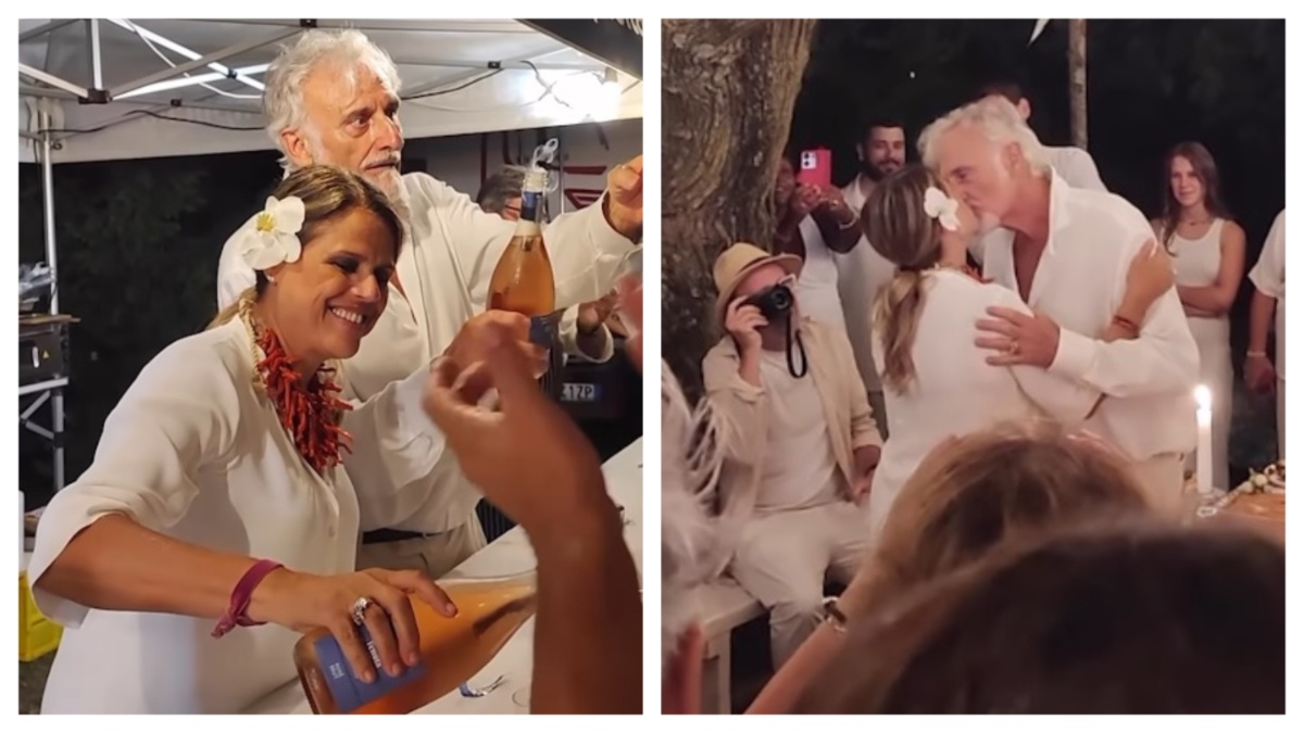 La cantante Tosca Donati e il marito, l’attore e regista teatrale Massimo Venturiello, hanno festeggiato con parenti e amici il sì pronunciato con rito civile lo scorso 20 giugno. La festa di nozze si è svolta sabato 7 settembre. Si è trattato di un ricevimento informale in una location immersa nel verde. Dress code: total white. Tra i presenti, gli attori Rocco Papaleo e Michela Andreozzi.