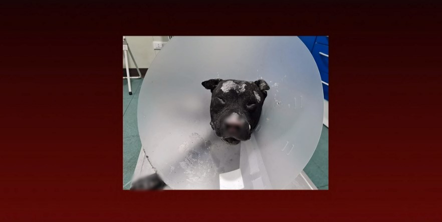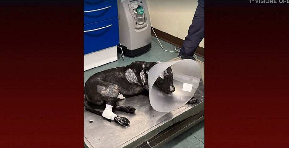 Il cane bruciato dal suo padrone a Palermo (Foto da video)