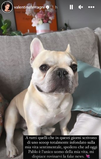 A smentire i rumors è la stessa Valentina Ferragni. “A tutti quelli che in questi giorni scrivono di uno scoop totalmente infondato sulla mia vita sentimentale, spoilero che ad oggi Pablo è l’unico uomo della mia vita, mi dispiace rovinarvi la fake news”, ha scritto in una Instagram Story.
