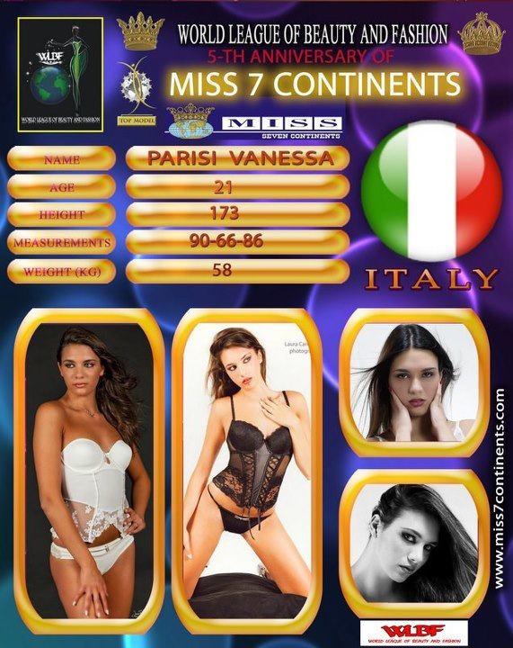 Rappresenterà l’Italia al concorso mondiale “Miss 7 Continents” in programma in Turchia dal prossimo 6 maggio. Vanessa Parisi, ventunenne di Valverde – in provincia di Catania, ha i numeri e le forme giuste per aspirare all’ambito titolo. La giovanissima bellezza siciliana, che aiuta la madre nel negozio di famiglia, volerà a Bodrum grazie alla fascia di “Miss Motors Elegance” conquistata in Puglia lo scorso novembre.