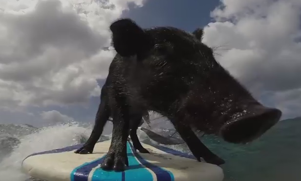 Il maiale che sfida le onde sulla tavola da surf alle Hawaii - Perizona Magazine