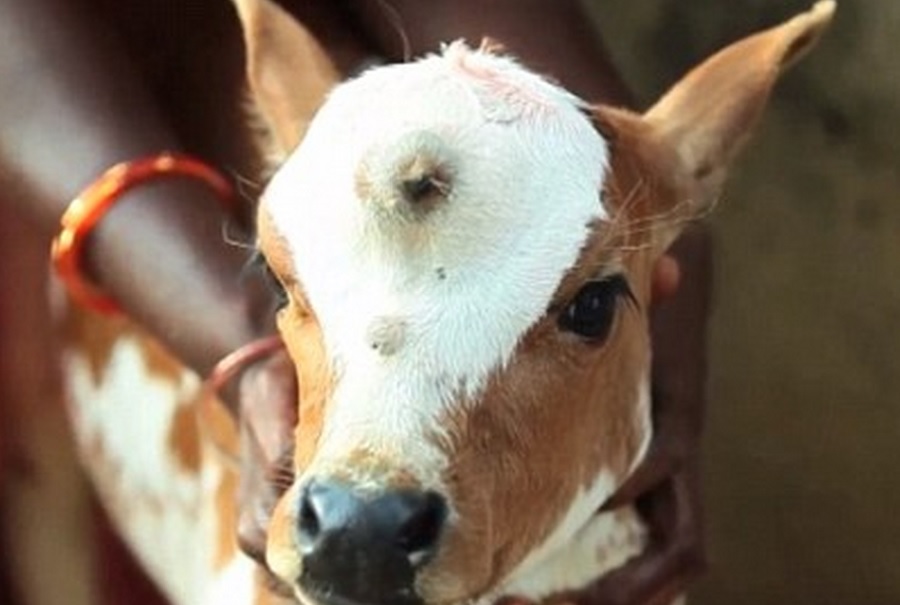 Vitellino nasce con tre occhi, per gli indiani è una divinità – Video