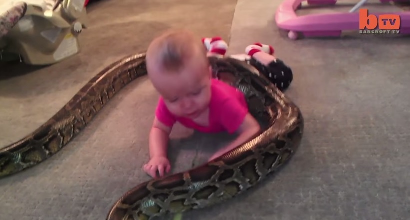 Bimba di 14 mesi gioca con un pitone di 4 metri – Video