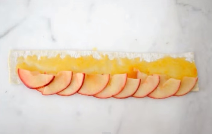 Stende uno strato di pasta sulle mele, il risultato è delizioso