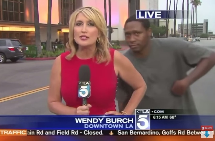 Alle sue spalle sbuca un uomo, la reazione della reporter è esilarante