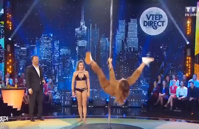 Ex Miss Francia rischia grosso: balla la pole dance in tv e cade a testa in giù