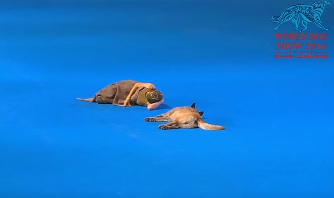 Si sdraia accanto al cane, quello che accade dopo è sorprendente
