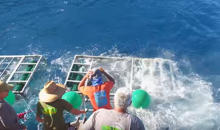 Squalo bianco entra in una gabbia con dentro un sub – Video